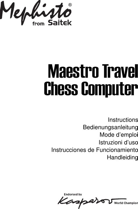 Read mephisto master chess user guide Reader online is a convenient and frugal way to read mephisto master chess user guide you love right from the comfort of your own home. Yes, there sites where you can get Reader "for free" but the ones listed below are clean from viruses and completely legal to use.